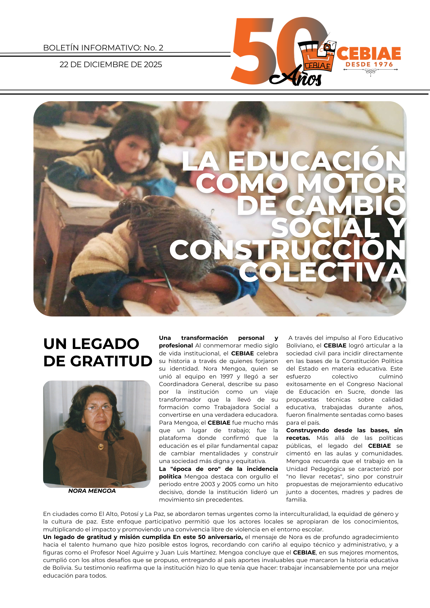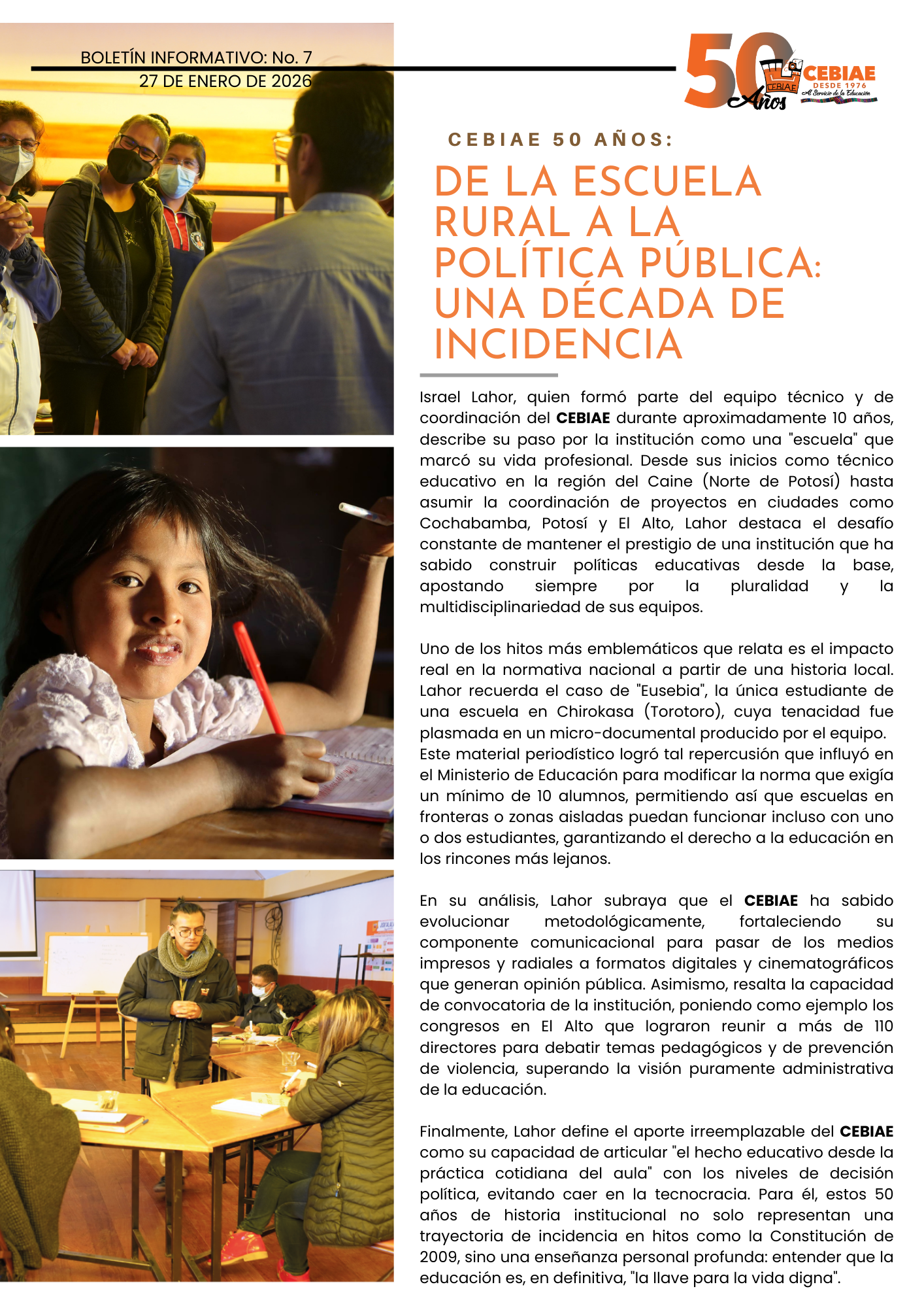 • También afirmamos que todos deberían acceder a la educación, aprender a leer y escribir, varones y mujeres de igual forma, ricos o pobres, aymaras O mestizos o blancos europeos.
